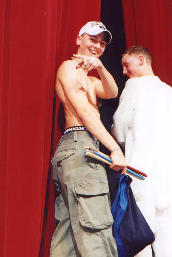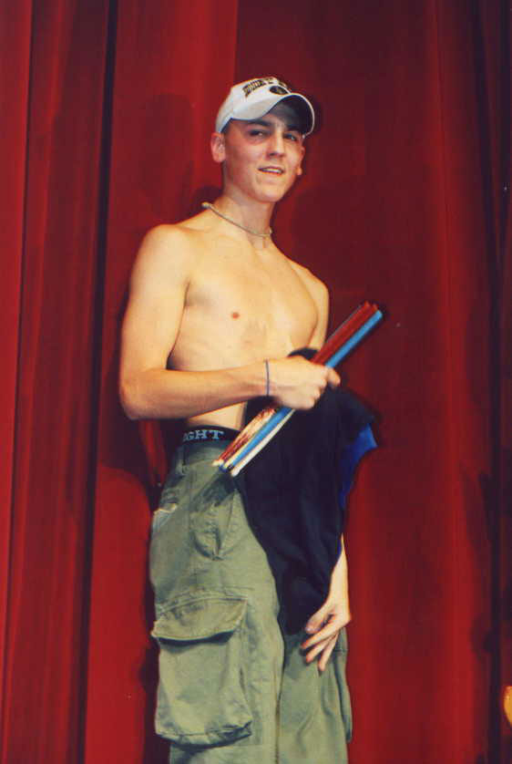 TJ takes his shirt off in front of the whole school